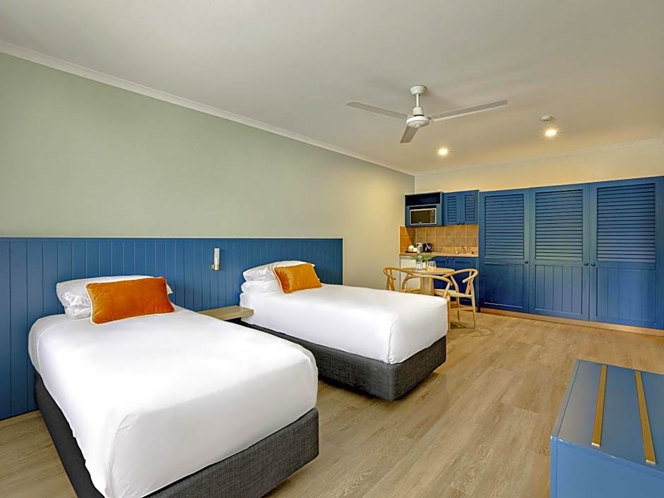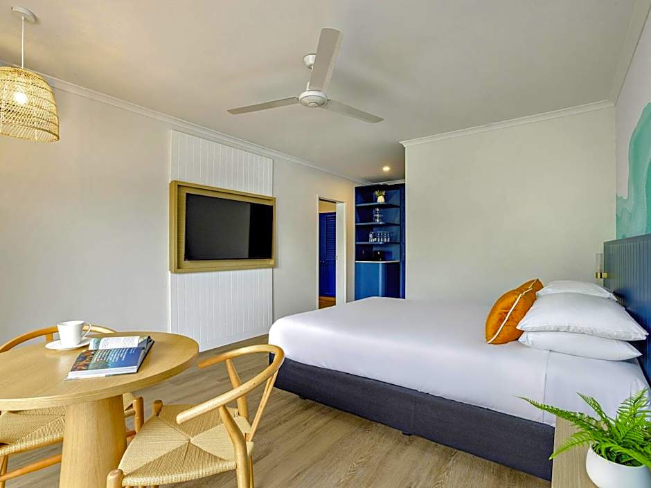 The spacious family room has an private bathroom with shower. It also includes a TV, air conditioning and fans, microwave, tea and coffee making facilities and a refrigerator. Some rooms have a balcony.